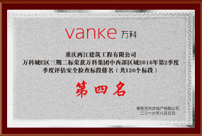 • 2019年万科集团中西部区域三季度评估安全文明第一名